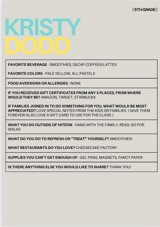 Fifth Grade Teachers
